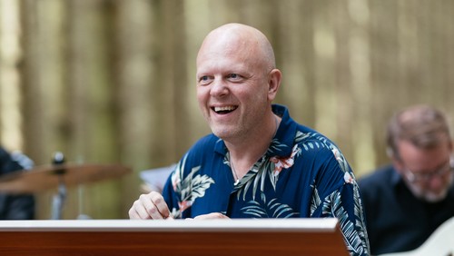 Kirkemusiker Nikolaj Skaaning har tilrettelagt 1. afdeling, som består af fællessange fra bl.a. Højskolesangbogen.